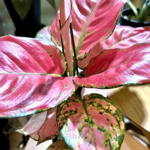 グリーンの中に紅一点😊アグラオネマオースピシャスレッド😊葉っぱの模様がかわいい🩷です〜 💖 アグラオネマ・オースピシャスレッドのご紹介 アグラオネマ・オースピシャスレッドは、東南アジア原産のサトイモ科の観葉植物です。その名の通り、鮮やかな「赤」や「ピンク」の斑が特徴で、緑の葉とのコントラストが美しく、室内のインテリアに優雅なアクセントを与えてくれます。 ✨ 特徴と魅力 • 優美な葉色: 葉の形状はオーバル(卵型)で、緑色の葉面にピンクや赤の斑がランダムに入り、葉の裏面は淡い赤色を帯びています。この華やかな色彩が最大の魅力です。 • 花言葉: 「青春の輝き」「スマート」という花言葉を持ち、新しい門出やプレゼントにも適しています。 • 空気浄化効果: 有害物質を吸収する空気浄化効果が期待でき、室内の空気をきれいにする助けとなります。 💧 育て方のポイント 比較的丈夫で育てやすい品種ですが、熱帯原産のため寒さと乾燥には注意が必要です。 • 置き場所: 明るい日陰を好みます。耐陰性はありますが、美しい斑(ふ)の色を保つためには明るさが必要です。ただし、真夏の直射日光は葉焼けの原因となるため、レースカーテン越しの光に当てましょう。 • 温度管理: 寒さに弱く、最低15℃以上を保つのが理想です。冬場は窓際など冷え込む場所は避け、暖房の風が直接当たらないよう注意しましょう。 • 水やりと湿度: 高温多湿を好むため、生育期(春〜秋)は土の表面が乾いたらたっぷりと水を与えます。冬は乾かし気味にしますが、年間を通して葉水(霧吹き)を頻繁に行い湿度を保つことが、葉の乾燥や病害虫の予防に繋がります。