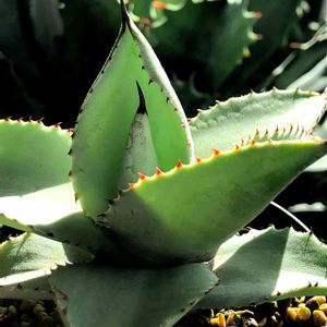 アガベ ドラゴントゥース 水不足のせいか寒さのせいか直射日光のせいかなかなか葉が綺麗にならない…