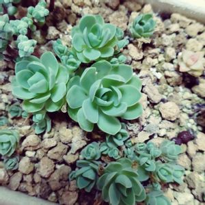 ★ピーチパーフェクト どうも♪ 普段あまり運動しないもんで、 久々に筋肉痛を体感中です😰 ふくらはぎパンパン💦 いやー山がかなり湿ってたので ヤマビルがあちこちについてました😱 他の人にまで被害が続かないよう ヤマビルを見つけたら潰しましょう(笑) 本日はピーチパーフェクト♪ 子持ち蓮華と同じオロスタキス属です✨ うちでは子持ち蓮華も含めてですが、 薄紅蓮華といい、オロスタキス系には ついつい水をやりすぎてしまい… なかなか引き締まった姿になってくれません😅 ピーチパーフェクトは薄紅蓮華と同じ、 マラコフィラ(アオノイワレンゲ)の変種 とも言われていますが、どうも違うようです🤔 アオノイワレンゲやゲンカイイワレンゲは 赤というより橙色に染まりますが、 ピーチパーフェクトはその名前の通り、 外葉や葉の縁、葉裏がうっすら桃色になる品種✨ おそらくですが、 ジェイドムトウンタインの スチャラカネームで出回っている 「sp. ジェイドマウンテン(2017.12.7投稿済)」も 同種か類縁種だと思われます。 -∴-∵-∴-∵-∴-∵-∴-∵-∴-∵-∴- Orostachys 'Peach Perfect' オロスタキス 'ピーチパーフェクト' 和名 不明(情報募集中) 別名 マラコフィラ ピーチパーフェクト(誤り) アグレガタ ピーチパーフェクト(誤り) シノニム Orostachys sp. 'Peach Perfect' Orostachys malacophylla 'Peach Perfect' Orostachys malacophylla var.aggregata 'Peach Perfect'