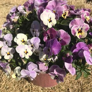ピンクの鉢にピンクのビオラを🌸で寄せた鉢(^O^) お安くなっていたピンクの鉢ラッキーってご購入♡ こちらもこん盛り♡