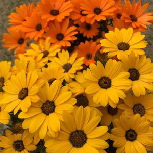 ホームセンターでの見切り品だったディモルフォセカ🌼 花が1つもなかったけどこんなに綺麗にたくさん咲いた〜嬉しい〜最高✨✨ビタミンカラーで元気出る♡