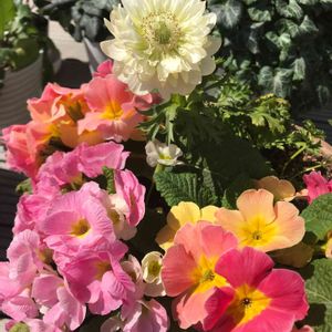 見切り品ジュリアンと白いアネモネ!ジュリアン花がたくさん咲きました✨✨ピンクと黄色が可愛くて♡早くアネモネ咲かないかなーー♪