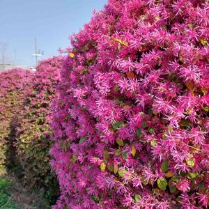 某天然温泉、駐車場脇 ピンクのかたまり〜に、ドッキリ! 🌺トキワマンサク🌺の花が、キレイに刈り込まれ、とっても豪華❣️
