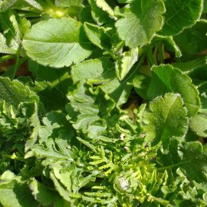 元気な緑の葉っぱ🌿中心に変化が〜 3年目のスカビオサ(マツムシソウ)確か、ピンクとブルーのどちらか? 昨年春に咲き終わってから、一年ぶりに花が見られそう🎶 ず〜っと楽しみに、夏越し冬越し見守ってきたので、嬉しくて〜💓💙