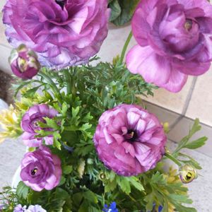 仮植えのままで 💜ラナンキュラス💜の花が どんどん咲いて〜 チョット気取った、オシャレさん💜🎶 下の方で、ロベリア2色が羨ましげ💕