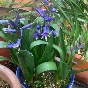 おはようございます☀️ 雨の中地植えの ヒアシンス元気に開花 💜💙青と紫の見事な グラデーション拡大して見て見て🧐ほれぼれ💗