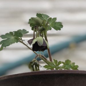 昨年、とても珍しい品種だからお買い得だと言われて買った黒いオダマキ。 小さくて枯れそうだったけど、何とか今年も咲いてくれました。 少しずつ大きくなって欲しいです。