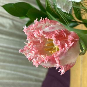 この子、とっても可愛い❤️チューリップもいろんな種類があるんですね、なんていう名前かしら?ファンシーフリル?