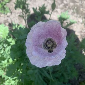 去年の咲いた花から取った種まきポピーブラックマジック🖤一輪咲いてました🌸パラパラばら撒いてた種だな。まだ小さい苗がたくさん出ています🌱🌱🌱