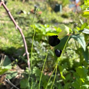 ポピー🖤ブラックマジック ↑ 一日中☔️雨降りの日に開花。明日には散ってしまうかもしれないので、傘をさして撮りに行きました。 ↓ 翌日やはり散りはじめました😭 お日さまにあたってもこんなに漆黒だったのに、残念です。 この子はこぼれ種です。 絶えてしまったオダマキの鉢から🌱が出てきて、やったーヾ(≧∇≦*)/ オダマキ!と大事に育てていたら、なんか違う🤨 バイヤーさんにその話をすると、もしかしたら可愛いお花が咲いてくれるかもよ❣️と言うのでそのまま育てると、なんとブラックマジックでした🖤 引っこ抜くのを止めてくれてありがとう(*´▽`人)