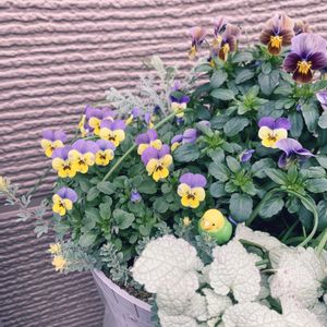 今日も寒かったですね🥶 動物ビオラの寄せ植えを 3日前から玄関デビューしました 太陽が見え隠れするので陽があたったところを📸 まだお花少ないけど、増えてくるのが楽しみ😊 タンゴアモーレが少し濃い色になってるきがします🤔