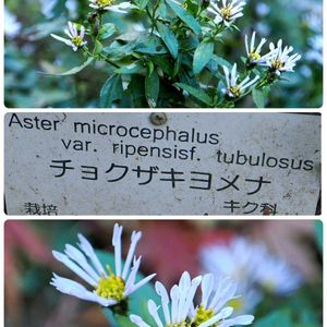 チョクザキヨメナ(猪口咲き嫁菜) 小石川植物園で📷 舌状花が🥄です ヨメナというのにノコンギクの栽培品種なのだそう🙄 なるほど、萼が🍷です☝️ ヨメナは🍸 ノコンギクは🍷 以前花友さんに教わりました📝 猪口咲きは、椿なら侘助のように半開きの事みたい😲 🏷️水曜日は水色