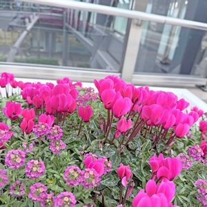 おはようございます。 今朝も冬空です。 先日、出かけあまり時間がなかったので 大阪駅とヨドバシとの通路にて。 シクラメンとアリッサム。 ピンク色の花壇が可愛いです、。