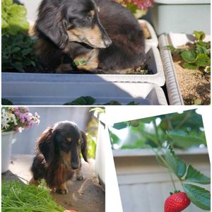 こんばんは✧ ワンワン祭り 🏷 参加させていただきます(*ฅ́˘ฅ̀*)♡ 苺の座布団 暖かいワン ☀ ૮₍´• ˕ •`₎ა 🍓🪴 朝一番に陽のあたる プランターの中… 今1番のお気に入りの場所(💧•́ ₃ •̀) おつかれさまでした˖*.✧゜ 暖かくなさって おやすみなさいませ💤