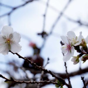 おはようございます。 神奈川県座間市にある「相模が丘仲よし小道」で咲いていた桜🌸の花をアップします。 ジュウガツザクラだけかと思っていたら、もう1本咲いていたんです。ジュウガツザクラより大きな白っぽい花です。冬桜(フユザクラ)という桜なんです。幹に樹種の説明がありました。4月上旬と秋に咲き、豆桜と里桜または山桜との雑種と推定され、小葉桜(コバザクラ)とも呼ばれるそうです。 どうしても逆光になってしまい、暗い写真になっちゃいました😅