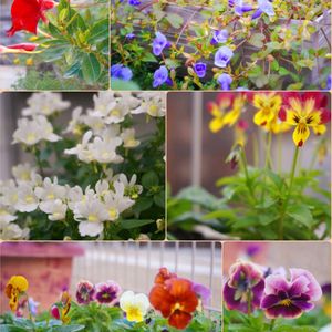 終わりに近づいた夏のお花と、これからのお花が同居する季節𓈒𓏸 𓈒 𓏸 𓐍 今庭で頑張ってる サマーラッシュ❤️ カタリーナ💜 ネメシア🤍 今庭を綾なし始めた 名無しのビオラたち𓂃𓂂ꕤ*.゚ 今日はとてもいい天気☀️