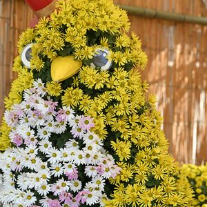 おはようございます。 雨が降り、天気予報では黄砂が飛んでくるようです。 小菊で作られたペンギンちゃん。 お目目パッチリさんです~。