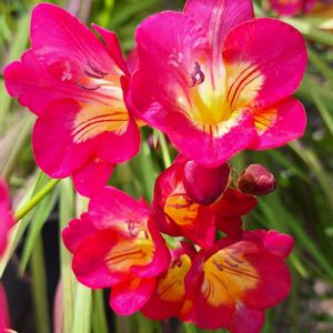 こんばんは(・∀・)ノ 今日のお庭&ベランダにて 📷1枚目、2枚目 フリージア赤っぽく見えますが濃いピンク色です。 📷3枚目 パンジーさんモリモリ 暑さでクタっとしがちです💧 📷4枚目 今年は開花数が増えました🩷 📷5枚目 3鉢ある中で一番遅い開花です😌
