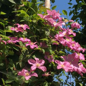 クレマチス ✨✨コンテス ドゥ ブショウ✨✨ 久し振りの青空に ピンクのお花が映えています💕