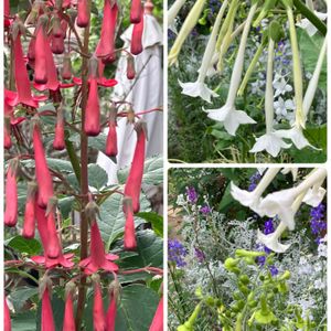 ♪フィゲリウス とても強い子で3シーズン楽しませてくれます🎶 ♥️が お庭のアクセントになっています✨ ♪ニコチアナ シルベストリス🤍 背高のっぽさんで、テッペンに白いお花を放射状に咲かせます✨ ♪ニコチアナ ラングスドルフィー💚 ベル型でグリーンのお花は、ナチュラルなお庭に馴染みます✨