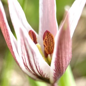 アマナ 日当たりの良い畦の斜面でよく咲いている♬ 開いた花は昨日投稿したヒロハノアマナによく似ているけれど、花被片の外側の赤紫の条線はくっきりとしている🟪 苞葉は普通2時々3なのだけれど、こちらはいかにも「蕾を守ってましたよ」という形(๑・ิ◡・ิ๑) 一方で葉の幅はそれほどなく、先に行くほど巻いてボートのようになる🟩 オオイヌノフグリやヤハズノエンドウなどと一緒に生えている里山の ビューティフルサンデー🏷