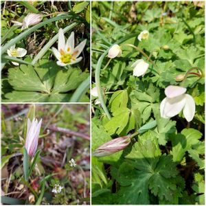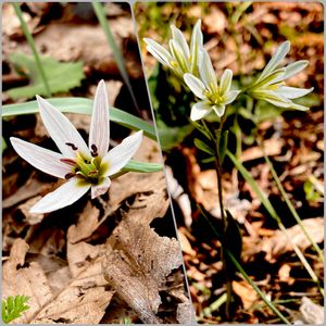 初めて出会えたアマナのお花💓とニリンソウ💕の共演がとても綺麗でした😍💖 🏷️白い花マニア🏷️ちっちゃいものクラブに参加させて頂きます🥰 🔎アマナは球根が食用になり甘いのが名前の由来だそうで~花は早春の林で木々が葉をつける前に咲き、葉が茂る頃には姿を消す春植物だそうです❣️