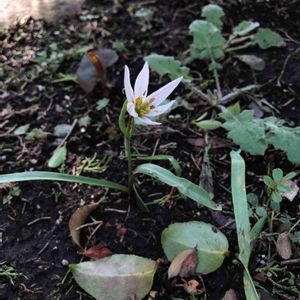 ウラシマソウの林を訪れたもう一つは、この前アマナの葉が生えてきていたので、花が咲いているかもと見に来たことです。 一輪だけ咲いていました。 林の側にお住まいの方は、ニラの花と思っていたそうです。 ここでもアマナの名前を教えることになりました。 自信のない私がこんな日が来ることが信じられません。 もう少ししたらたくさん咲くだろうと楽しみにしています。