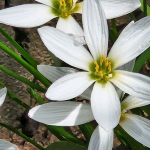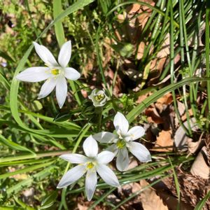 今日のお花 ニラ 花弁が3枚萼が3枚らしいです ②似てるかな〜 アマナ ③ニリンソウ 共通なのは白
