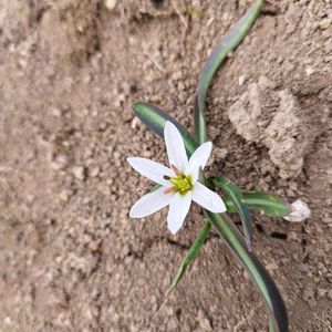 アマナ ユリ科アマナ属 花弁の裏の赤い線が可愛い🎶 小さな小さなチュウリップに似た花 頭でっかちで倒れたように咲いていました🌷😊 以前はチュウリップ属でしたが アマナ属に区別されたそうです 別名ムギクワイ 球根が甘く、クワイと同様に食べられる