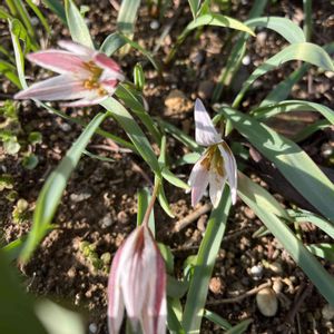 アマナ(甘菜) 昨年のアルバムを見てそろそろ咲き出したかな?と出掛けました。 咲いていました‼️ 花びらの裏側の赤紫色の筋が素敵💓 ①②③④ 佐倉城址公園 ⑤ 佐倉くらしの植物苑 昨日は入苑無料の日でした♪ 球根は甘く、食用になります。 ユリ科 アマナ属 別名: ムギクワイ 開花期: 3〜4月 花言葉: 『お天気や』 日が当たらないと咲かないことから。 地域によっては絶滅危惧種に指定されています。 アマナの種類: アマナ、ホソバナノアマナ、オオアマナ、キバナノアマナ