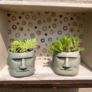 皆さんの多肉は元気ですか?? 私の多肉·····高温障害者が続出中💧 なので、子吹き多肉を救出🆘 モアイ🗿にIN⤴︎⤴🌱🌱🌱