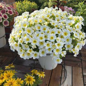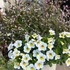 🌼 スーパーベル ハニーヨーグルト 🌼 PW 1️⃣3年目のカリブラコアです。 昨年、肥料をハイポネックス微分とハイポネックス原液から花工場1択で育てました。 結果、花数は多く咲きましたが枝が柔らかく少しだらしない姿に…😥 ↓ 今年は微分ハイポネックスと花工場を使用して育ててます。 あと、昨年の秋🍁から株元付近の枝から新芽を出す為に何度も切り戻し✂️をして、最終的には6号鉢サイズ(約18cm)までサイズダウンしました。 その後、花芽を見つけたら✂️してを何度も繰り返して順調に育ちました👍 2️⃣のpicのようには開花しませんでしたが💦自分では大満足です😊 2️⃣2年前に PWフォトコン(夏最強の PW)で賞🏆を取った時のpic📸 ハニーヨーグルトはとても育て易いのでオススメですヨ❣️
