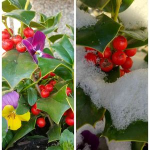 メリークリスマス🎄 クリスマスホーリーの寄せ植え 先日の雪が…❄️💖