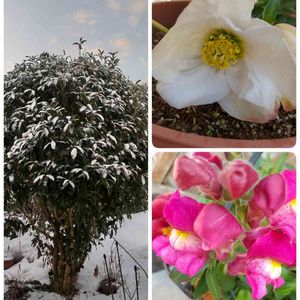 今日は職場も雪でした❄️ 中庭の鉢の植えにも雪が…😅 クリスマスローズ咲きかけていたのに、がんばれー🚩😃🚩