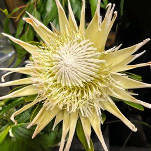 おはようございます🙋♀️ キングプロテア🤍💠 🏷️白い水曜日♡ 🏷️白い貴婦人✨️ 🏷️総苞片が花弁のように見える 🏷️王者の風格 🏷️ビックな花 参加します。 大輪の豪華なお花を見つけました😮 ググったら南アフリカ共和国の国花 王者の風格有るお花です✨️💕 外側の白い部分 葉っぱが変形した総苞片 中央がお花でした😂 見るからに威厳の有るお花ですね😃ドライフラワーにして人気の有る花です👌🫠