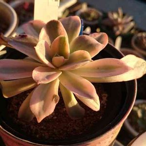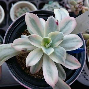 ほんのりピンクな錦多肉 高砂の翁錦(ムーンリバー) こちらもごく少しピンクになってきました。もう少し色づいてくれたらかなり目を引きそう。がんばって!