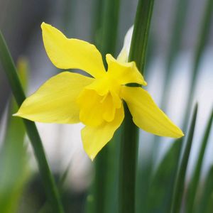細い茎に葉っぱ 黄色の糸スイセンが咲きました