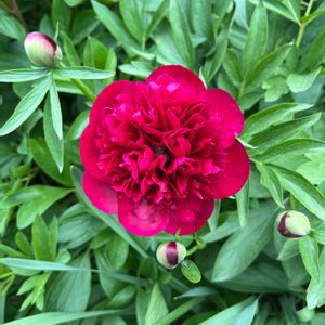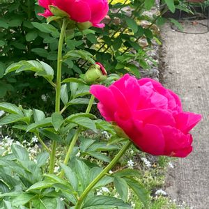 5月18日に投稿しましたシャクヤク 華燭の典、3つのツボミのうち、早々と一つ咲きました。その後、なかなか開花しませんでしたが、やっと残り2つ満開になりました。