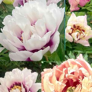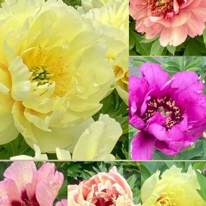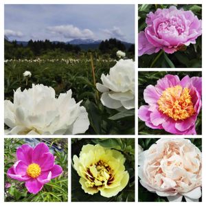 こんばんは シャクヤク園のお花 シャクヤクと牡丹の交配種 ハイブリッドシャクヤクです ↖︎バートゼラ ↗︎ヒラリー →モーニングライラック ↘︎オリエンタルゴールド ↓コッパーケトル ↙︎ピジョンオブシュガープラム 今日お出掛けのシャクヤク園のお花を見ていただきました ありがとうございました