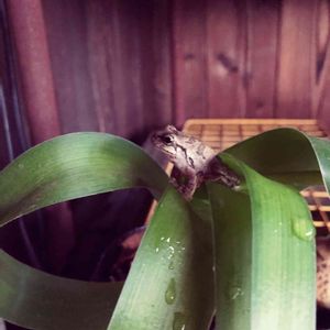 台風直前の訪問者 葉っぱの上で逃げないでじっとしていたので 抱っこしたら 手のひらの上で長いことじーっとしてて 可愛いからずっと眺めてた