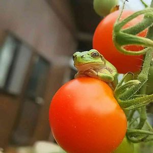 少し前の写真ですが、プチトマトにアマガエル(^^)手がかわいい(*^^*)