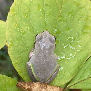 あら。朝からずっとそこにいるけど向きだけクルクル変えてるね🐸 午後からパラパラと雨が☔️知ってたの?