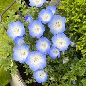 畑のお花 百均で買った種 ミックスフラワーって何だろう?と思ってだけど、何が入っているか分からないって事? モネフィラが咲きました。😊 可愛い❤️