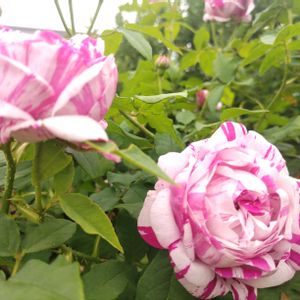 こちらも今、賑やかに咲いてる薔薇たちです。ごちゃごちゃしていますね