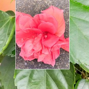 外に出てみたら昨夜の雨で ハイビスカス🌺が落ちてました 可哀想なので葉の上に加工してみました✌️❤️