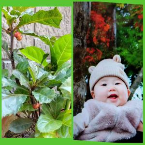 おはようございます🤗 我が家のヤブコウジと ひ孫が日光で紅葉🍁と記念写真😍