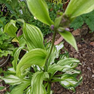 ギボウシ。花が、咲くかも!カタツムリさんに。栄養取られながらの成長でした。😅🤭🤣