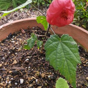 アブチロン、リンゴ🍎まだ、小さい苗物。花が、ひときわ目立っています。😅🤭☺️