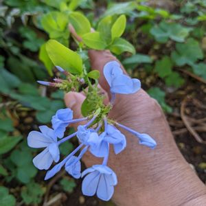 老婆の手と、苗木の花ルリマツリ🌼🤣😅👍☀️🤭
