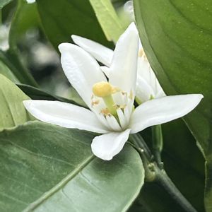 今日のお花 ウンシュウミカン(温州蜜柑)は 5月頃に星形の純白の花を咲かせます。 500年位前に 柑橘の産地である中国浙江省温州から入った種を 鹿児島県で栽培し 突然変異で生まれた国産のミカンです。 ミカンには ビタミンC 食物繊維 カリウムなどを多く含んでいて 特にビタミンCは 免疫力を高めて 風邪を予防したり お肌の健康を保つ効果があります。 また 薄皮や白い筋には 食物繊維がいっぱい含まれていて 腸内環境を整えたり 血糖値の上昇やコレステロールの吸収を抑える効果があるようです。 白い筋も取り除かずそのまま食べるのがいいみたいですね。🤗✨ 日本原産。 ミカン科ミカン属の常緑低木。